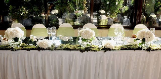The whole decoration was based on elements from nature, moss, hydrangea and cherries bark, which was really interesting combination with those mirrors on the tables. Very sophisticated and elegant.